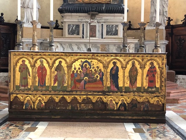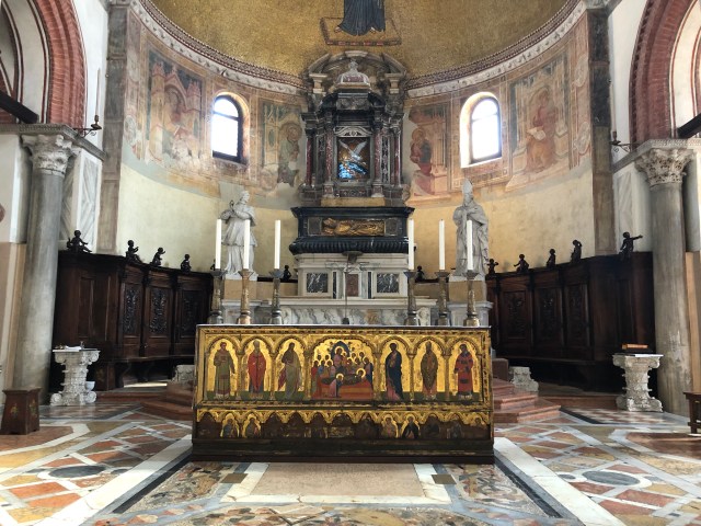 Venice and its islands – Day 5 Posted byAndy Manshel March 29, 2019 Leave a comment on Venice and its islands – Day 5 The church on Torcello — fantastic mosaics of which no photos were permitted.A lot of vaparetto rides to Murano, Burano and TorcelloLook closely. The weirdest chess set, ever.Murano churchOur local shrine. Adjacent to Vivaldi’s Oespidale Share this: Click to share on X (Opens in new window) X Click to share on Facebook (Opens in new window) Facebook Like Loading...