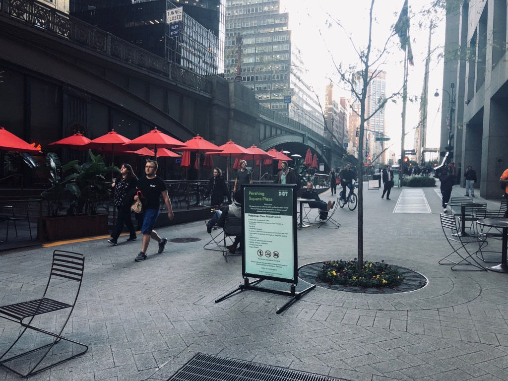 Delighted to see that after 40 years the pedestrianization of Park Avenue at Pershing Square has finally been implemented — although the arc of history is certainly non-linear. The advocacy by Grand Central Partnership of the closing of Park Avenue for the plaza in 1998 angered then Mayor Rudolf W. Giuliani (who still seems to have some anger management issues), and was apparently the precipitating event for the removal of the President and General Counsel of GCP and their replacement by his allies. Those folks are still at the helm of GCP, and presumably managed the construction and management of this great amenity — which was part of the original Grand Central District plan from the 80’s by Ben Thomson and Associates. Full credit goes to the vision of Dan Biederman, the creator, along with Peter Malkin, of GCP, and Buzzy O’Keefe. Perhaps the time has come for Dan’s name to be re-associated with GCP’s many great accomplishments.